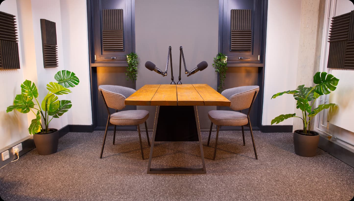 Запиши свой подкаст в профессиональной студии с качественным оборудованием. Независимо от того, новичок ты или опытный подкастер.